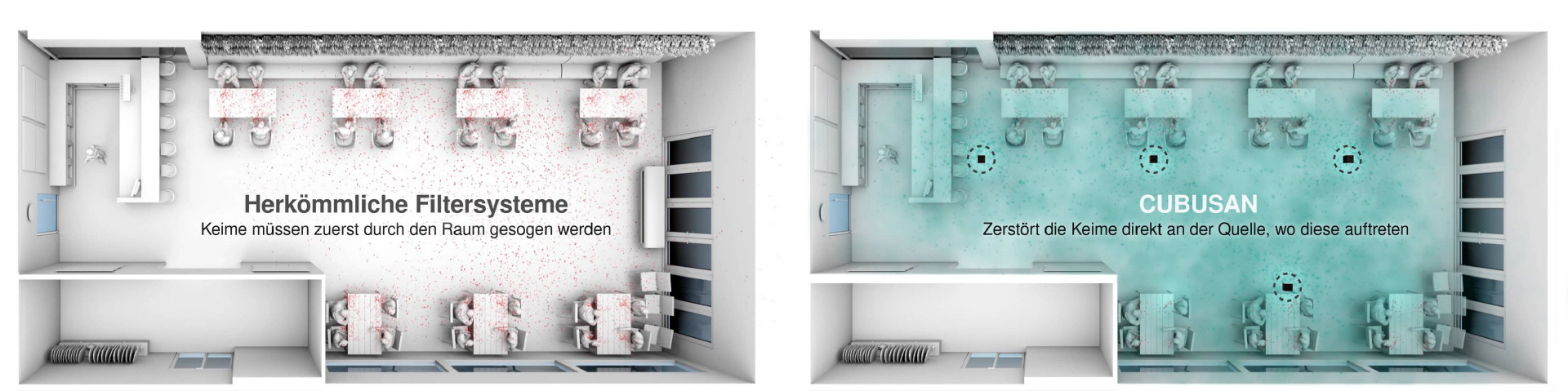 Der CUBUSAN zerstört die Keime an der Quelle. Ohne Luftumwälzung.