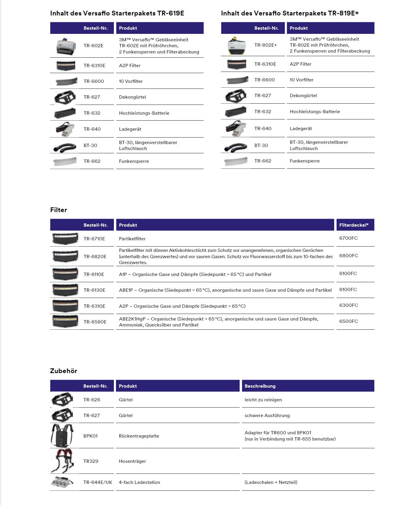 Zubehörteile TR-800 und TR-600