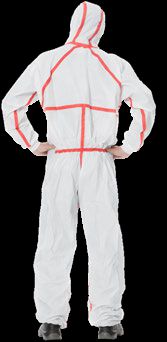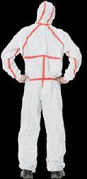 Gefertigt aus einem speziell entwickelten Laminat, ist der Schutzanzug 4565 gegenüber Permeation von Chemikalien besonders geeignet. Die Nähte sind mit einem roten Abklebeband zusätzlich gegen feine Partikel und Flüssigkeiten nach CE Typ 4/5/6 geschützt. Zusätzlich schützt der 3M Schutzanzug 4565 vor biologischen und infektiösen Einflüssen nach EN 14126.