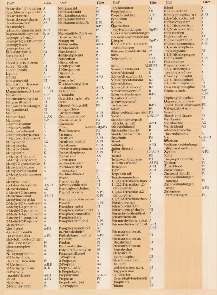 Einsatzgrenzen: Maximale Belastung der Luft , bei der die Atemschutzmaske noch eingesetzt werden kann. Dieser Wert wird im allgemeinen als “Vielfaches der maximal zulässigen Arbeitsplatz- konzentration (MAK)” angegeben.