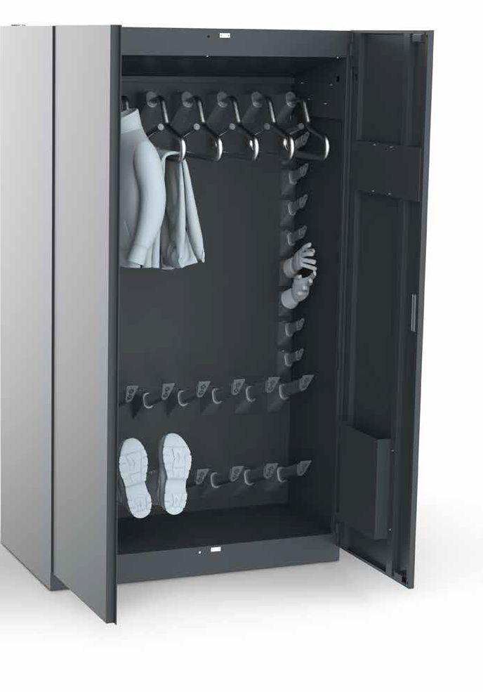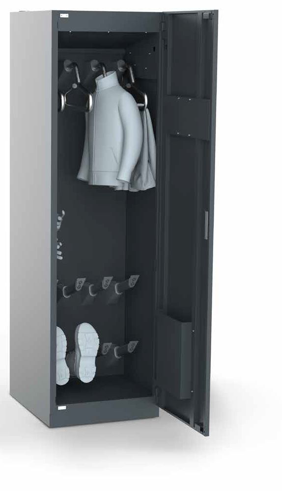 - mit ventilgesteuerten Trocknungsarmen aus Aluminium (Alu oval) mit Ausblas-Endkappe, für 8 Paar Schuhe und 8 Paar Handschuhe,
