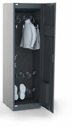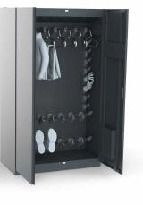 - mit 8 Spezialkleiderbügel aus Edelstahl (herausnehmbar) mit Auslaßventilen, für das Aufhängen von Jacken und Hosen;