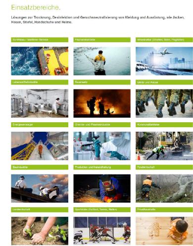 ■ Darüber hinaus werden mit der STEREX-Technologie unangenehme Gerüche aus der (Arbeits-) Kleidung zuverlässig entfernt. Die Desinfektion erfolgt ohne Einsatz giftiger oder umweltschädlicher Chemie und ist gesundheitlich unbedenklich.