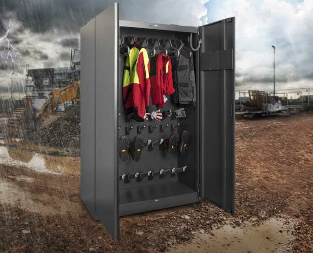 Ein hochwertiges Gebläse, kombiniert mit beheizter Trocknungsluft, gewahrt eine materialschonende und energiesparende Trocknung der Ausrüstung.